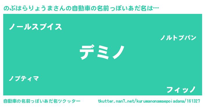 | 男性向けラノベタイトル風あだ名 | 『のぶはらりょうまという概念が存在しない退屈な世界 』 |