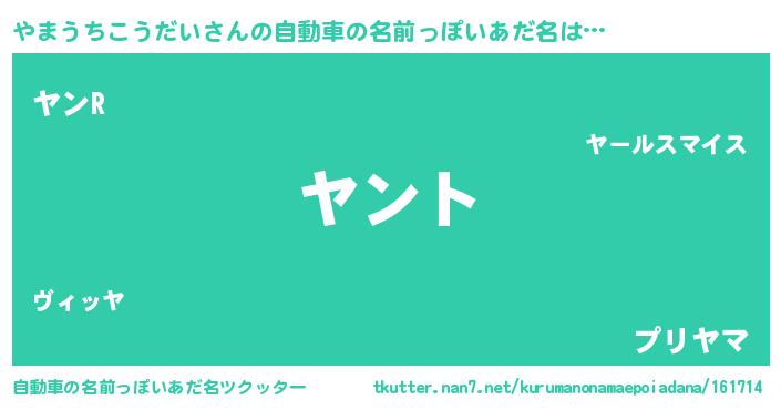 | 男性向けラノベタイトル風あだ名 | 『やまうちこうだいの嫁は女の子じゃないと思った?』 |