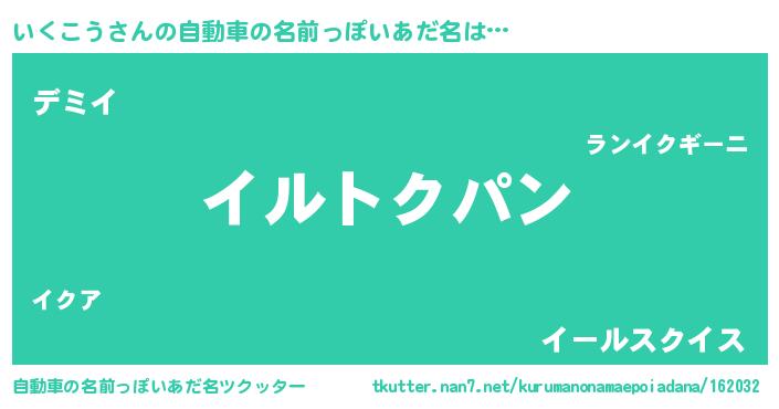 いくこうさんの自動車の名前っぽいあだ名をツクッター!