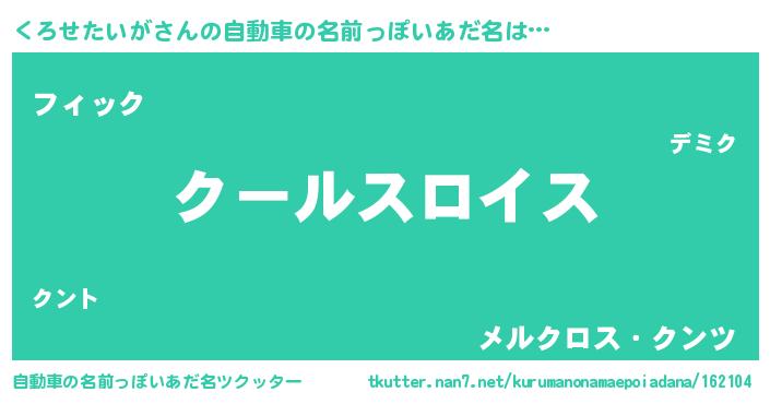 | 欧米人風あだ名 | 『トリンドルくろせたいが』 |