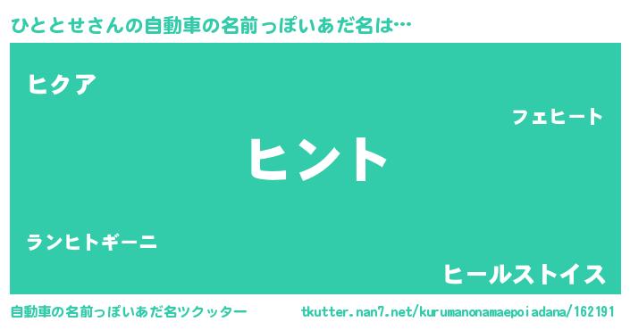 | ポケモン風あだ名 | 『ヒヒトトセ』『ヒトトダネ』 |