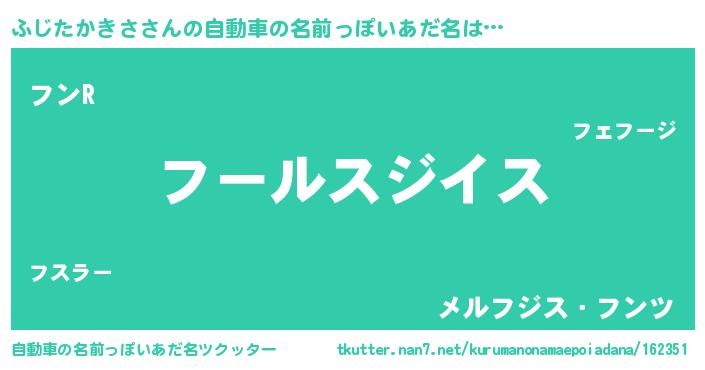 | 男性向けラノベタイトル風あだ名 | 『ふじたかきさ~年齢イコール彼女いない歴の魔法使い~』 |