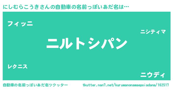 | 意味不明あだ名 | 『とにかく怪しいにしむらこうき』 |