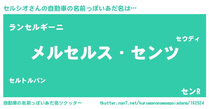 | 男性向けラノベタイトル風あだ名 | 『Re:セルシオから始める異世界生活』 |