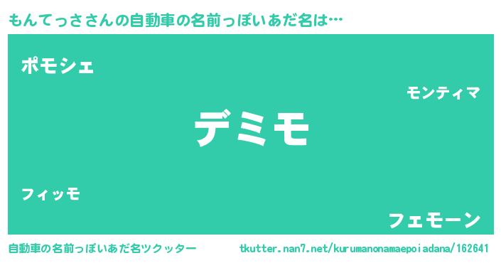 | 男性向けラノベタイトル風あだ名 | 『もんてっさという概念が存在しない退屈な世界 』 |
