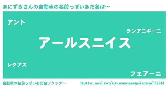 | 男性向けラノベタイトル風あだ名 | 『アニズキスレイヤー』 |