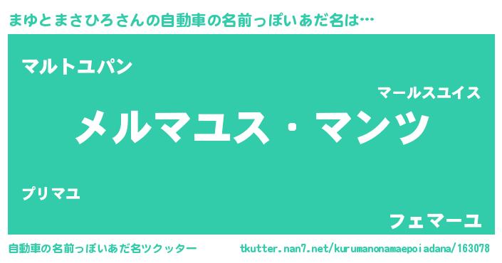 | 意味不明あだ名 | 『自称まゆとまさひろ』 |