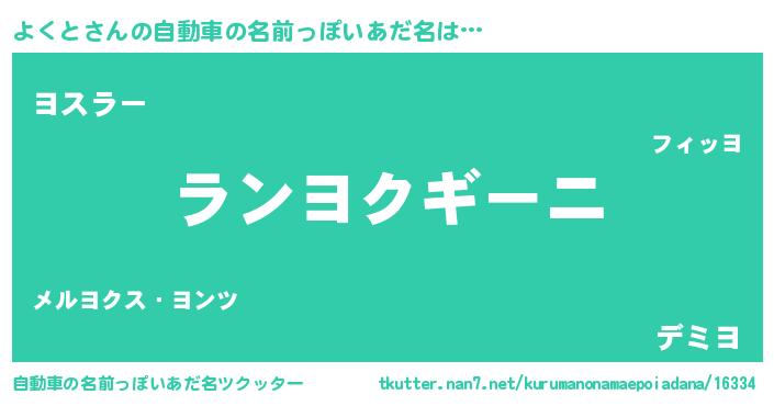 よくとさんの自動車の名前っぽいあだ名は… 『ランヨクギーニ』『ヨスラー』『デミヨ』 ツクッター #自動車の名前っぽいあだ名ツクッター http://tkutter.nan7.net/kurumanonamaepoiadana/16334/