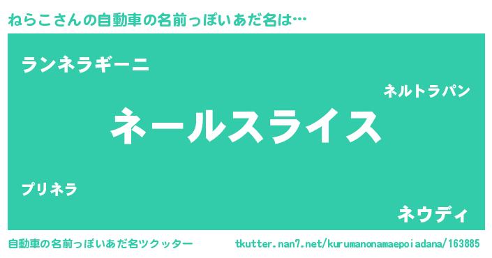 | 男性向けラノベタイトル風あだ名 | 『転生したらねらこだった件』 |