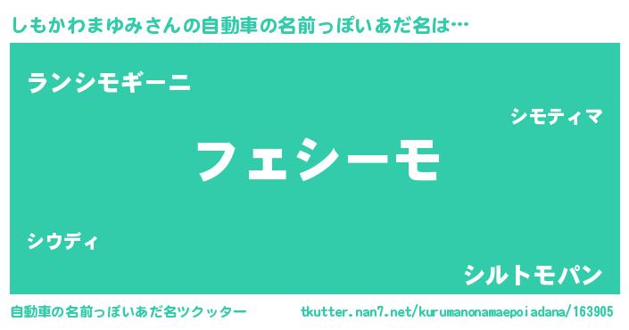 | 意味不明あだ名 | 『とにかく怪しいしもかわまゆみ』 |