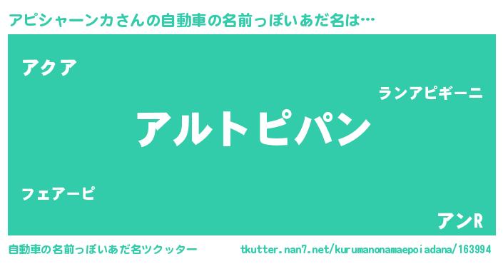| 意味不明あだ名 | 『とにかく怪しいアピシャーンカ』 |