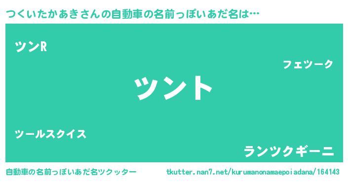 つくいたかあきさんの自動車の名前っぽいあだ名をツクッター!