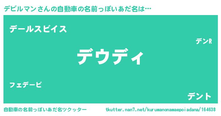 | 男性向けラノベタイトル風あだ名 | 『魔弾の王とデビルマン』 |