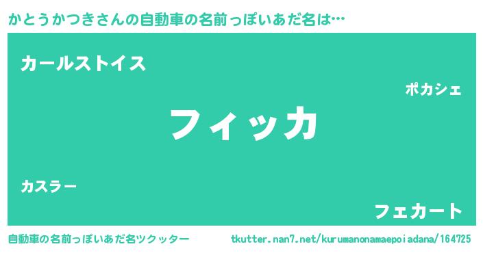 | 男性向けラノベタイトル風あだ名 | 『おまえをオタクにしてやるから、俺をかとうかつきにしてくれ! 』 |