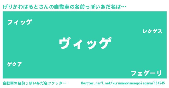 げりかわはるとさんの自動車の名前っぽいあだ名をツクッター!