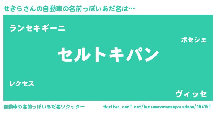 | 意味不明あだ名 | 『とにかく怪しいせきら』『自称せきら』 |