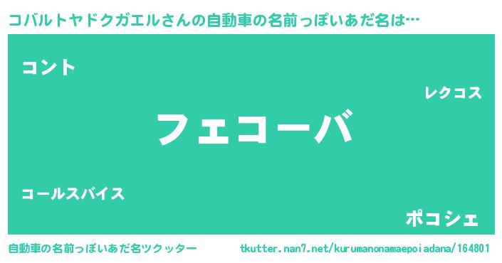 | 胡散臭い通販商品みたいなあだ名 | 『信頼と実績のサプリメント…その名も「コバルトヤドクガエル」』 |