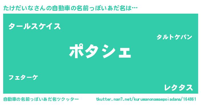 | 男性向けラノベタイトル風あだ名 | 『この素晴らしい世界にたけだいなを!』 |
