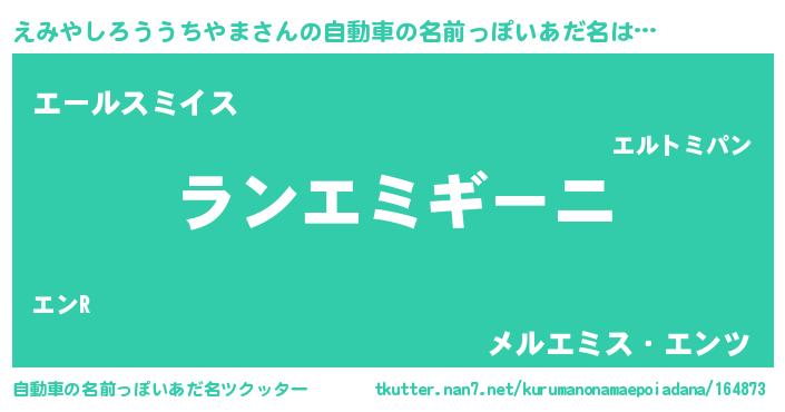 | 欧米人風あだ名 | 『アンジェラ・えみやしろううちやま』 |