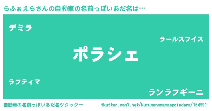 | 男性向けラノベタイトル風あだ名 | 『この素晴らしい世界にらふぁえらを!』 |
