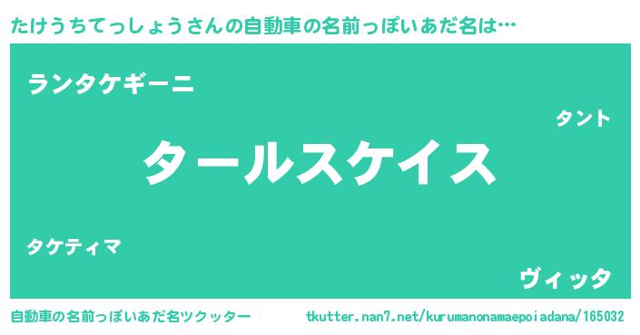 | 男性向けラノベタイトル風あだ名 | 『タケウチテッショウスレイヤー』 |