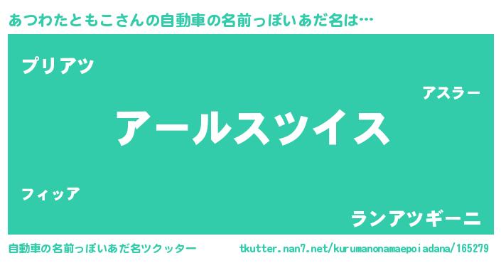 | 男性向けラノベタイトル風あだ名 | 『転生したらあつわたともこだった件』 |