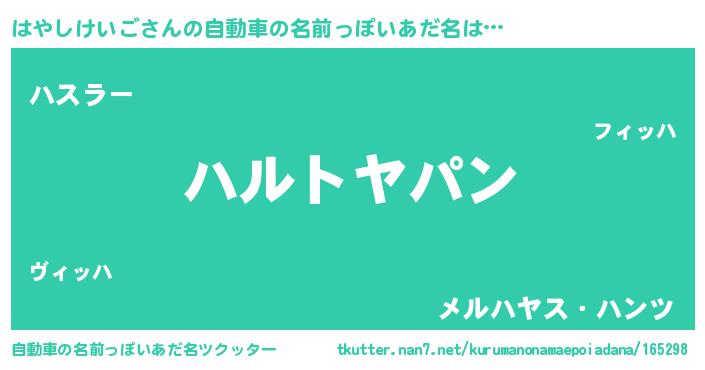 | 女子向けラノベタイトル風あだ名 | 『はやしけいごの卵を拾いまして』 |
