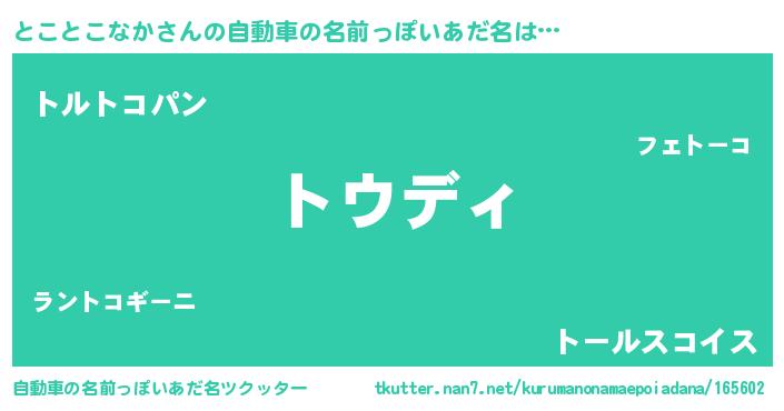 | 男性向けラノベタイトル風あだ名 | 『魔弾の王ととことこなか』 |