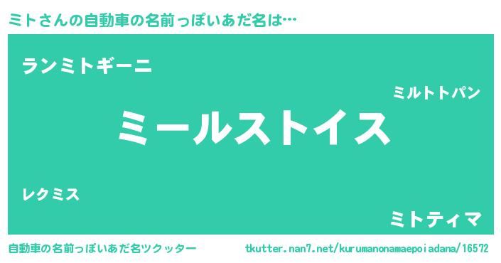 | 女子向けラノベタイトル風あだ名 | 『ミトの玉の輿計画!』 |