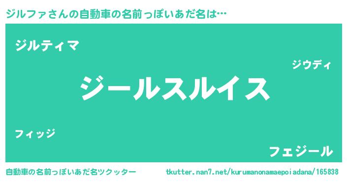 | 女子向けラノベタイトル風あだ名 | 『ジルファの玉の輿計画!』 |