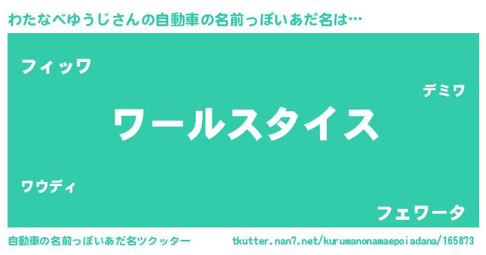 | 男性向けラノベタイトル風あだ名 | 『わたなべゆうじ~年齢イコール彼女いない歴の魔法使い~』 |