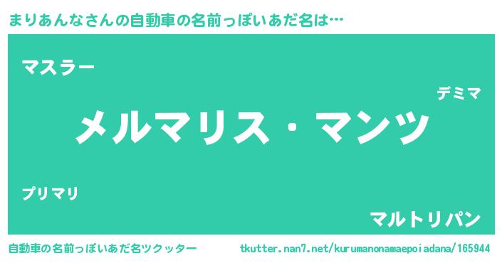 | 男性向けラノベタイトル風あだ名 | 『Re:まりあんなから始める異世界生活』 |