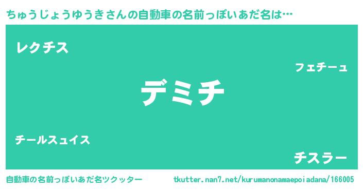 | 男性向けラノベタイトル風あだ名 | 『ちゅうじょうゆうきという概念が存在しない退屈な世界 』 |