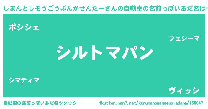 | 女子向けラノベタイトル風あだ名 | 『しまんとしそうごうぶんかせんたーの卵を拾いまして』 |