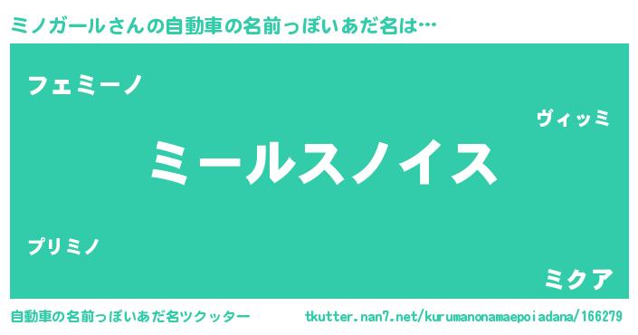 | 女子向けラノベタイトル風あだ名 | 『ミノガールの玉の輿計画!』 |