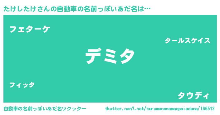 | 男性向けラノベタイトル風あだ名 | 『たけしたけという概念が存在しない退屈な世界 』 |