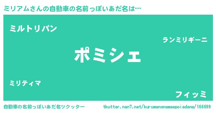 | 男性向けラノベタイトル風あだ名 | 『この素晴らしい世界にミリアムを!』 |