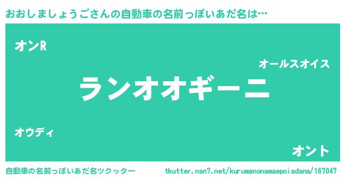 | 欧米人風あだ名 | 『アンジェラ・おおしましょうご』 |