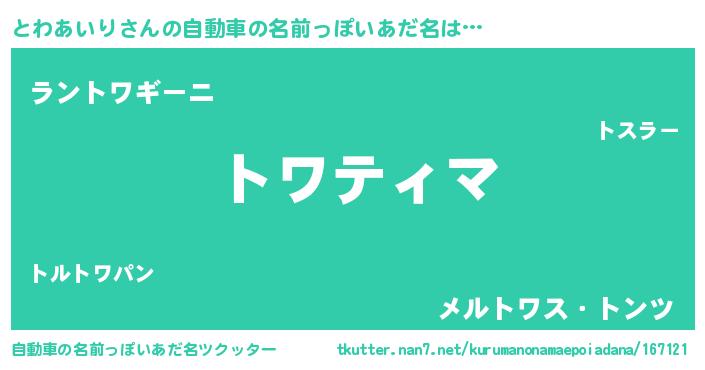 | 胡散臭い通販商品みたいなあだ名 | 『億万長者になれる水晶球…その名も「とわあいり」』 |
