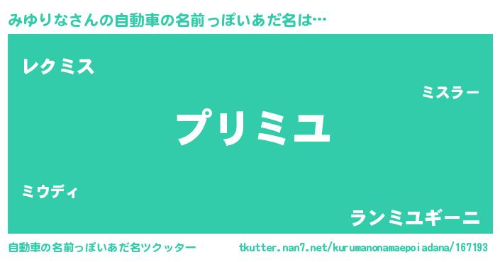 みゆりなさんの自動車の名前っぽいあだ名をツクッター!