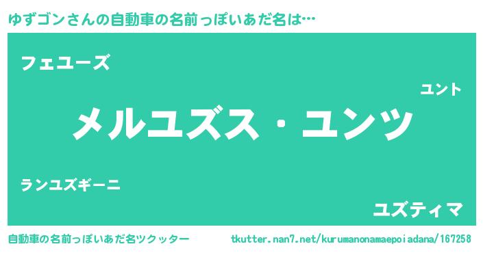 ゆずゴンさんの自動車の名前っぽいあだ名をツクッター!