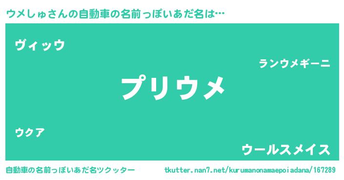 | 男性向けラノベタイトル風あだ名 | 『ウメしゅの憂鬱』 |
