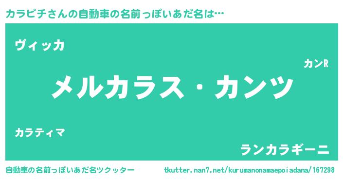 | 男性向けラノベタイトル風あだ名 | 『Re:カラピチから始める異世界生活』 |