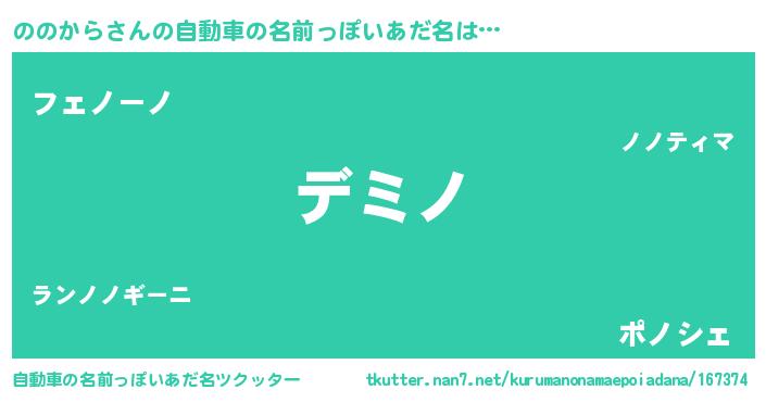 | ファンタジー風あだ名 | 『ノノディッシュ』『カークノノラー』 |