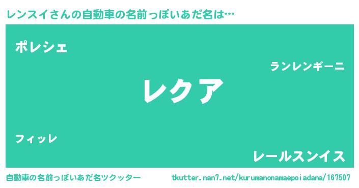 | 欧米人風あだ名 | 『レンスイクリステル』 |