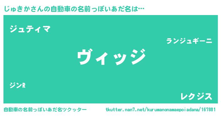 | 女子向けラノベタイトル風あだ名 | 『じゅきかの契約王妃』『じゅきか恋絵巻』 |