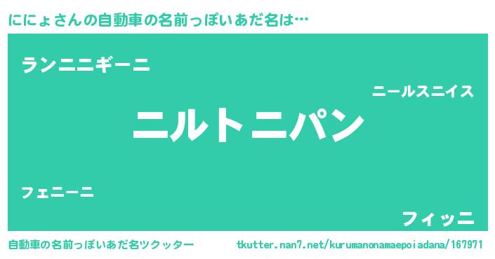 | 男性向けラノベタイトル風あだ名 | 『ダンジョンにににょを求めるのは間違っているだろうか』 |