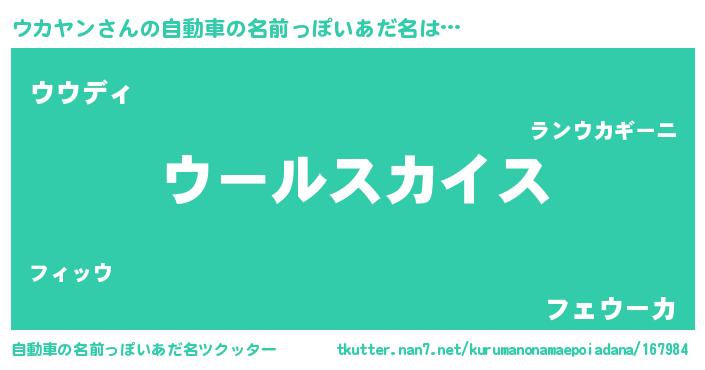 | 男性向けラノベタイトル風あだ名 | 『転生したらウカヤンだった件』 |