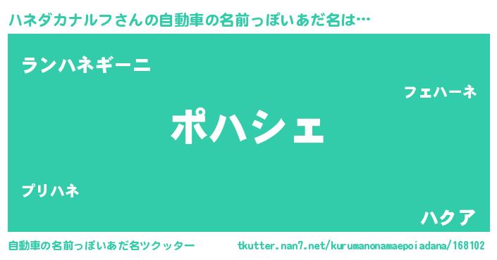 | 男性向けラノベタイトル風あだ名 | 『この素晴らしい世界にハネダカナルフを!』 |