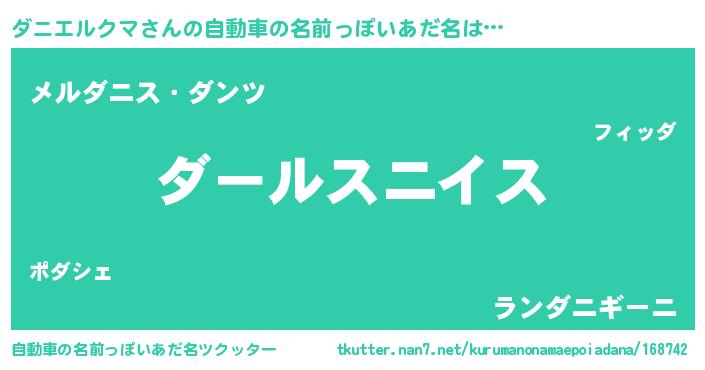 | 男性向けラノベタイトル風あだ名 | 『ダニエルクマスレイヤー』 |